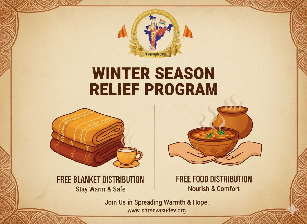 shree vasudev charitable trust dwara thand ke mousam me nisulak kambal aur food vitran ka aayojan kiya ja rha